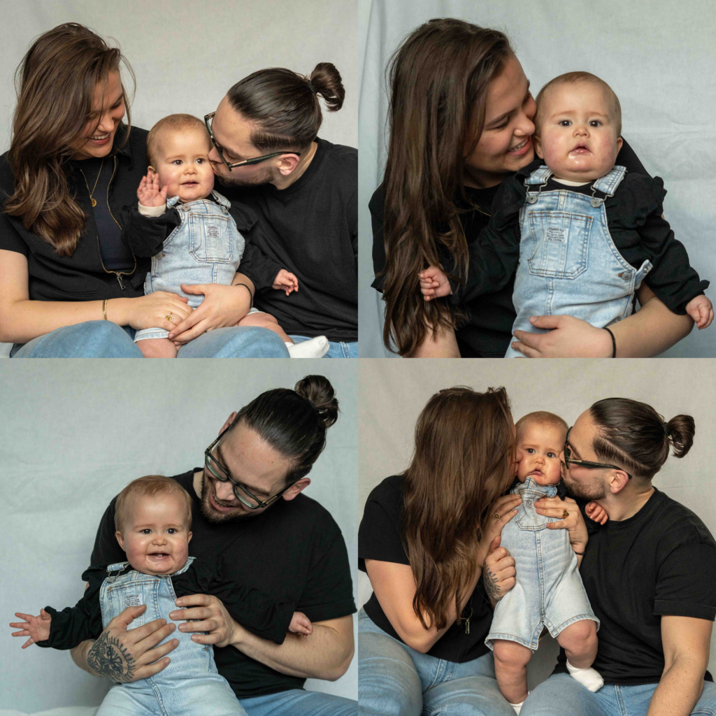 Anna Eva benaderde mij dat ze graag foto’s wou met haar mooie gezinnetje! Mijn studio was tijdens deze shoot nog in onderhoud dus hebben we op een creatieve manier van de woonkamer een mini studio gemaakt. Zaterdagochtend kwam het gezin met z’n 3e in matchende outfits en heb ik deze prachtige foto’s van ze mogen maken.